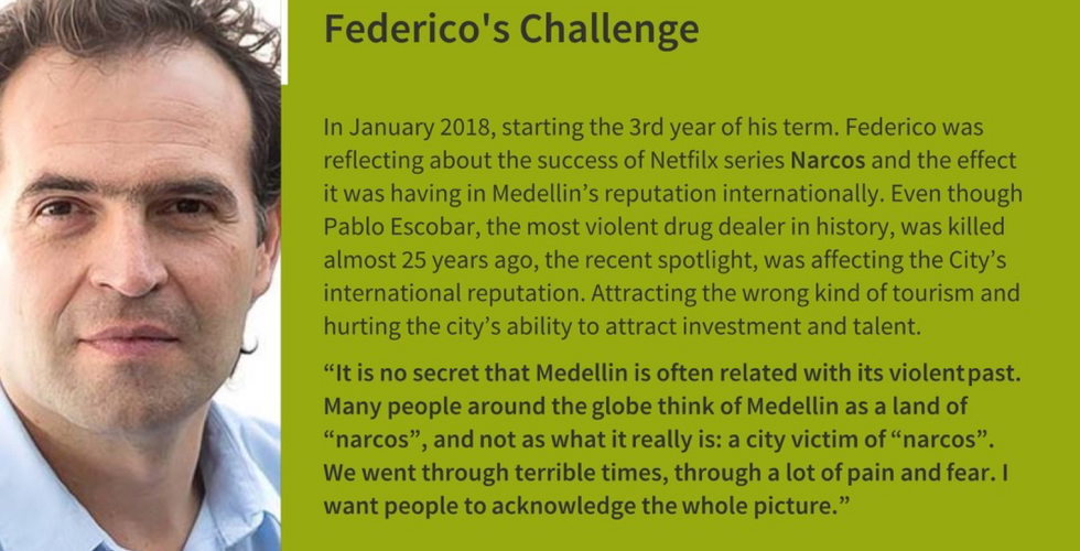 The protagonist of this case is Federico Gutierrez, Medellin's Mayor during 2016-2019. To learn about him and his challenge use the carrousel images below: